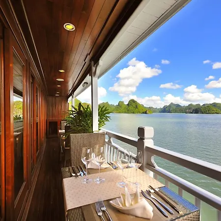 The Paradise Peak Cruise offers on-site breakfast in the restaurant. This grand property invites guests to have a drink at an outdoor bar. It comprises a lounge furnished with glass. For those travelling from afar, Cat Bi International airport is 43 minutes' drive away. The Paradise Peak Cruise Ha Long provides a fitness room, a sun deck, and a shared lounge. Keeping fit at the accommodation is convenient thanks to a fitness club that offers fitness classes. The onsite spa amenities include a spa salon.